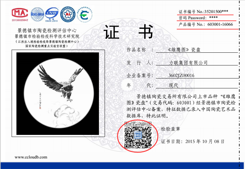 2、進(jìn)入中國陶瓷藝術(shù)品數(shù)據(jù)庫官網(wǎng)頁面,在圖二的選中區(qū)域輸入圖一中產(chǎn)品編號后五位數(shù)字“16066”,即可檢索到該編號產(chǎn)品可供對外查詢信息(每個產(chǎn)品對外可查詢一個體視顯微鏡照片數(shù)據(jù))