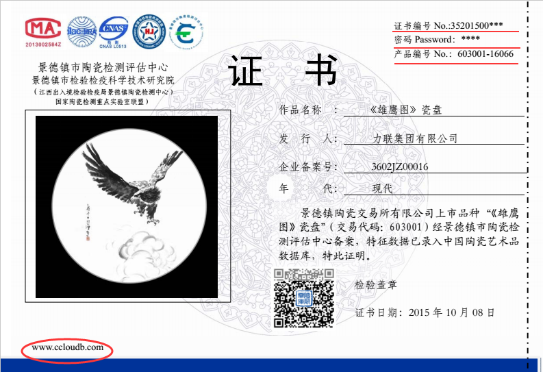 2、進入中國陶瓷藝術品數據庫官網頁面,在圖二的選中區域輸入圖一中產品編號后五位數字“16066”,即可檢索到該編號產品可供對外查詢信息(每個產品對外可查詢一個體視顯微鏡照片數據)