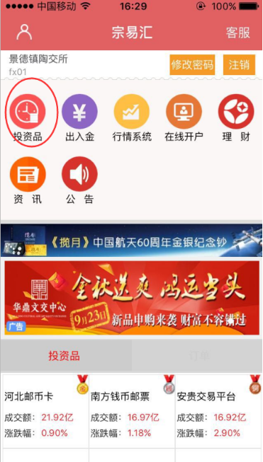 第二步:進入宗易匯界面點擊“投資品”如圖1-2